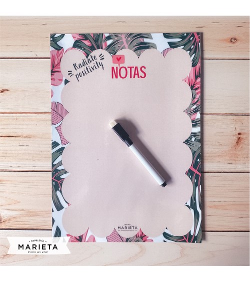 ¡En oferta! Quick view Add to cart Lista de deseos Notas p/Heladera - Tropical Precio 500,00 $ Notas tamaño A4 imantado para poner en la heladera. Incluye el marcador para escribir y borrar.