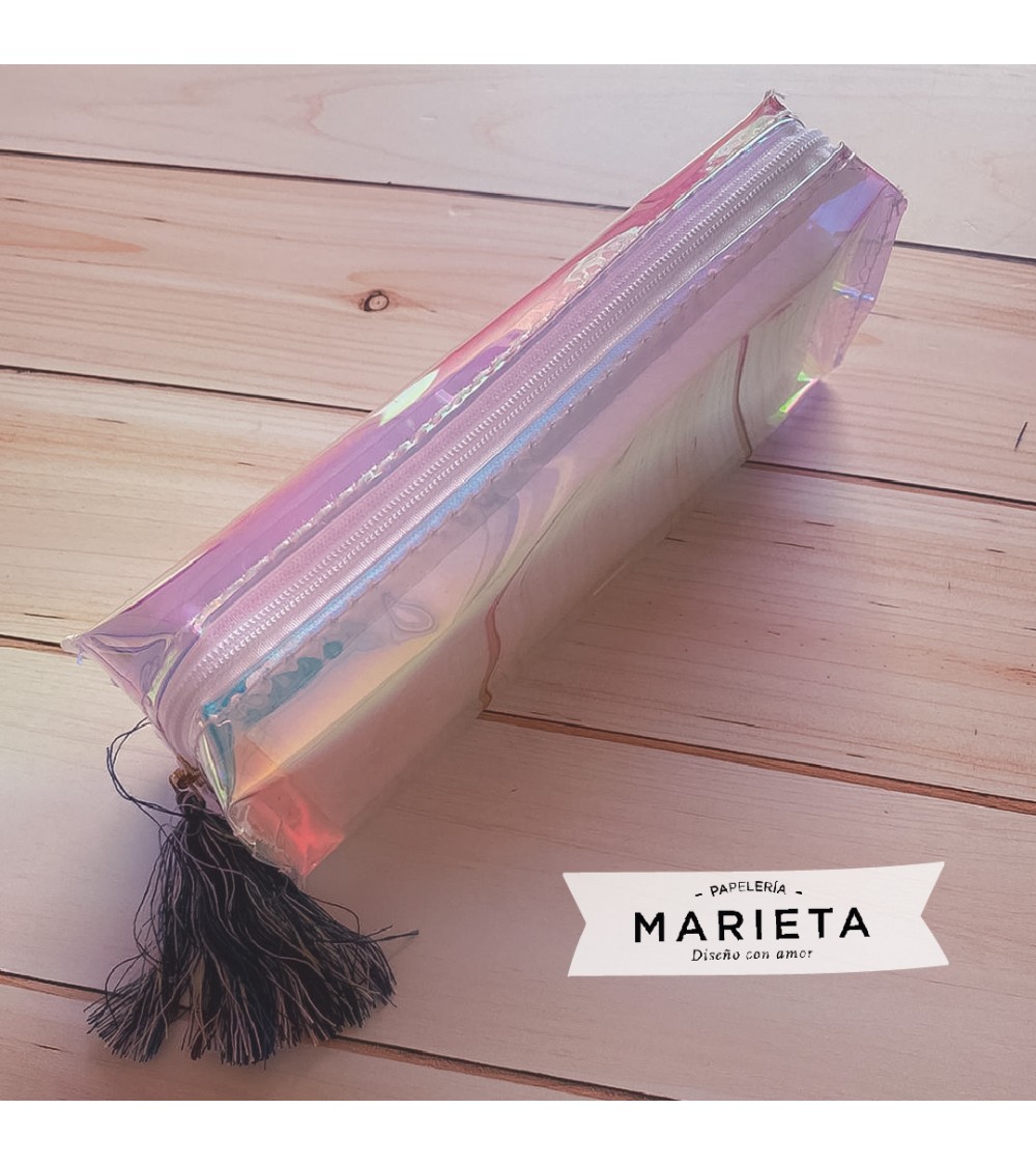 Cartuchera tornasolada con cierre.