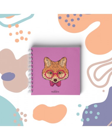 En su interior trae hojas con renglones y está encuadernada con rulo metálico blanco.
