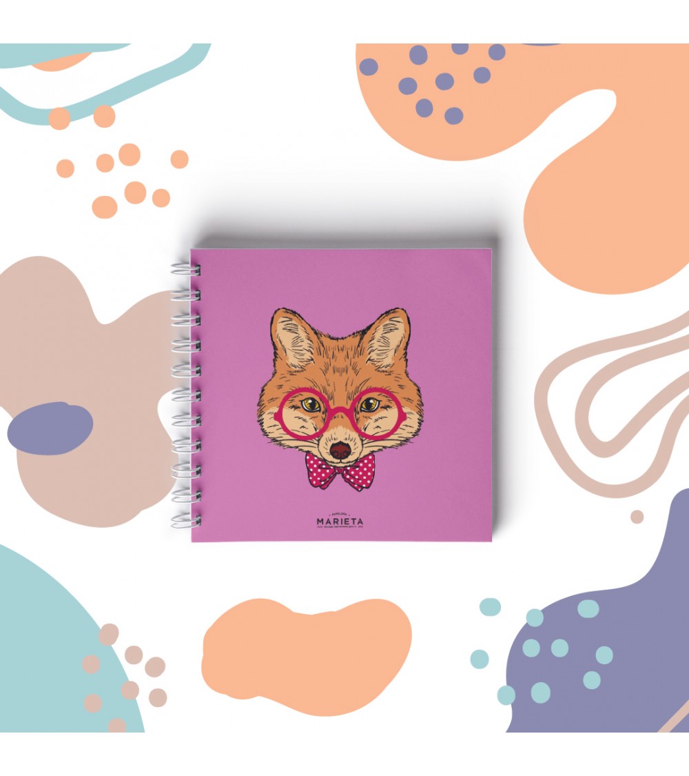 En su interior trae hojas lisas y está encuadernada con rulo metálico blanco.