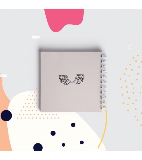 En su interior trae hojas lisas y está encuadernada con rulo metálico blanco.
