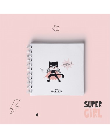 En su interior trae hojas lisas y está encuadernada con rulo metálico blanco.