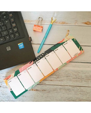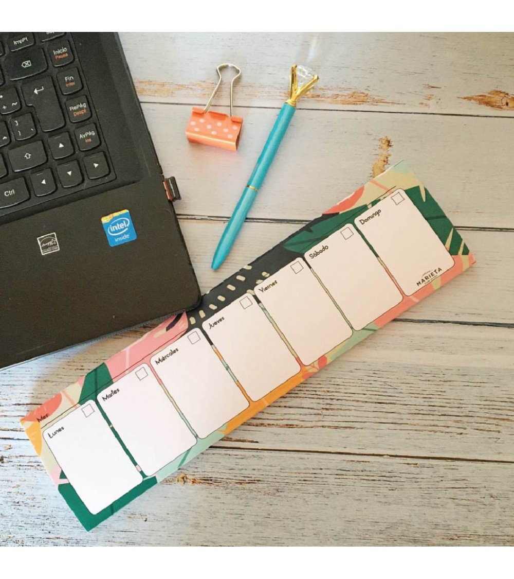 Trae 50 hojas impresas a color con diseño de planificador semanal.