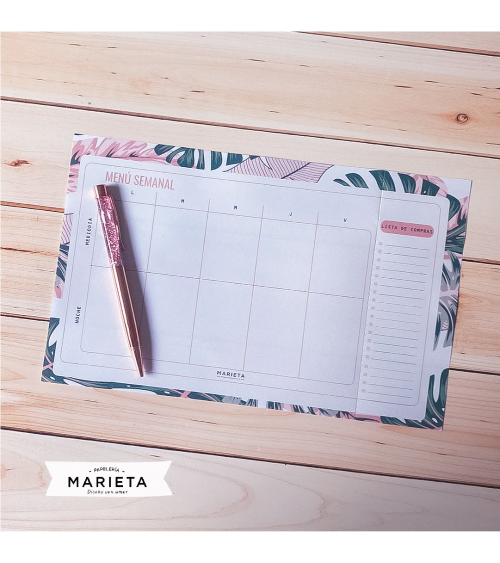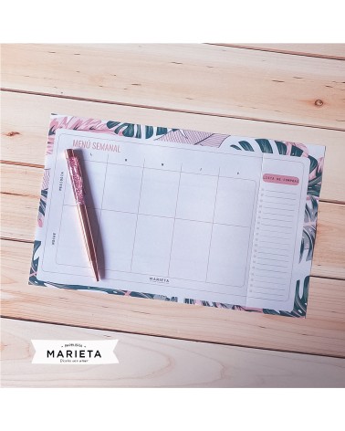 Block tamaño A4 con hojas para planificar el menú de la semana.