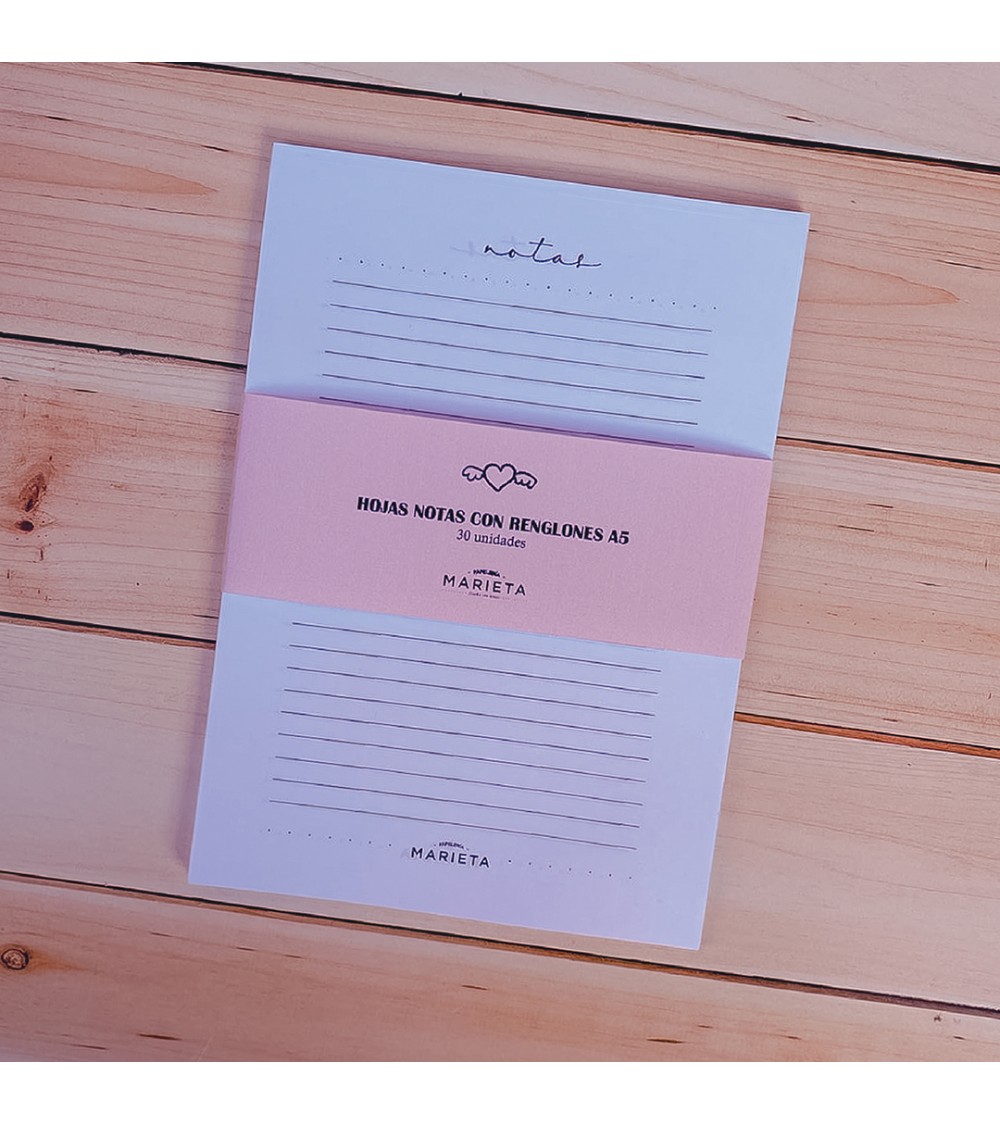 Repusto de 30 hojas, tamaño A5 y perforado para 6 anillos.