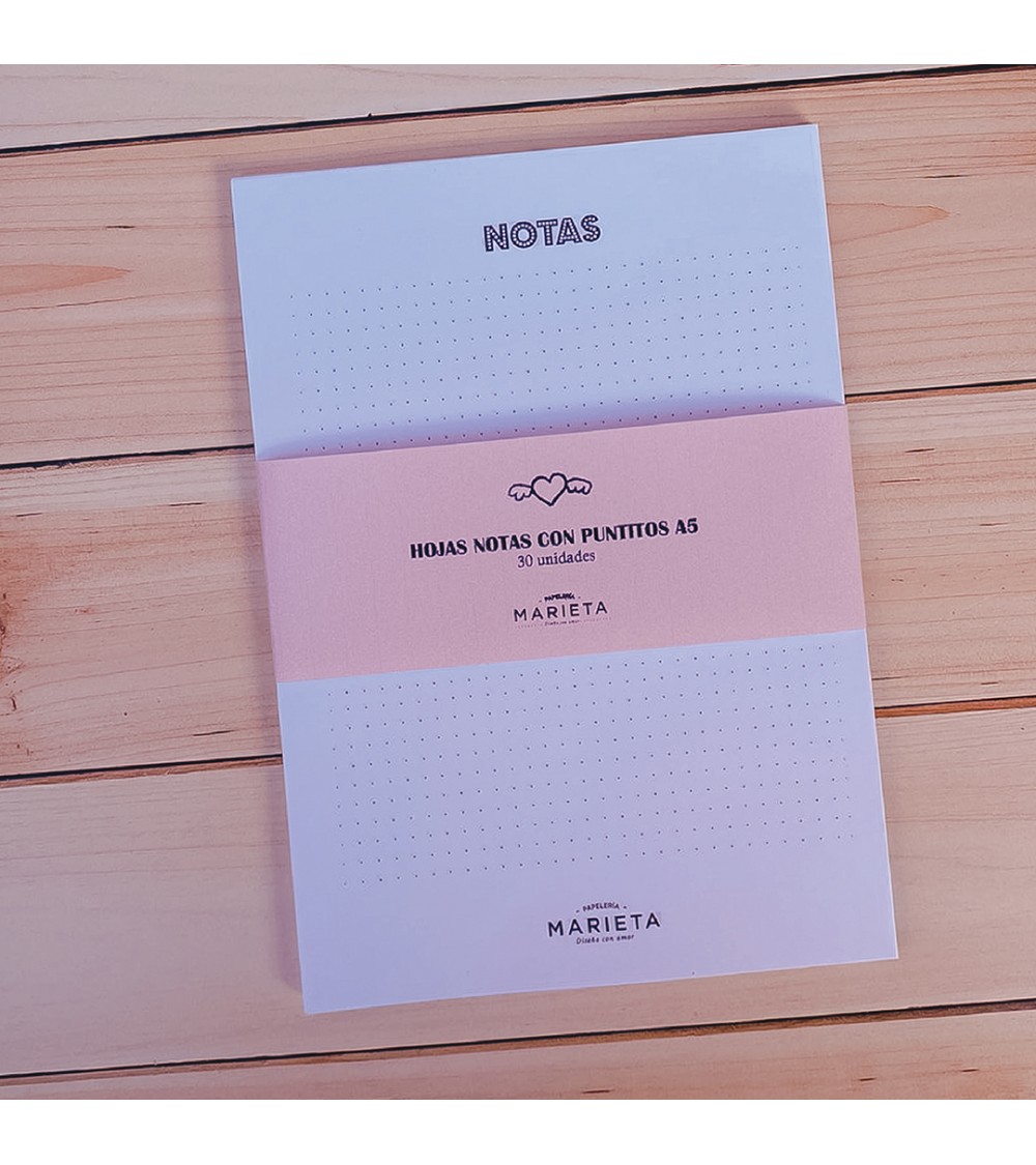 Repusto de 30 hojas, tamaño A5 y perforado para 6 anillos.